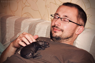 Today all the puppies have opened their eyes. Nadene as the first one feels more boldly and behaves more boldly. Today she attacked and caught her first prey - younger sister.
